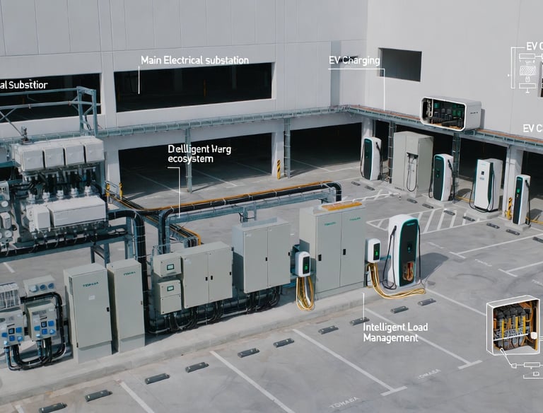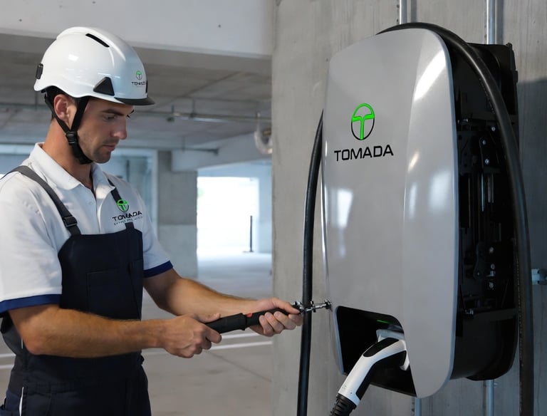 Infraestrutura completa para recarga elétrica em condomínios residenciais e comerciais.